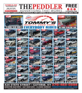 SERVING CLARKSVILLE, HOPKINSVILLE, FORT CAMPBELL & SURROUNDING COUNTIES SINCE 1983 E-PEDDLER.COM FREE BUYSELLTRADE THEPEDDLER ADVERTISING THAT WORKS OCTOBER 30, 2025 THRU NOVEMBER 5, 2025 ONE SECTION VOLUME 43 • NO. 13