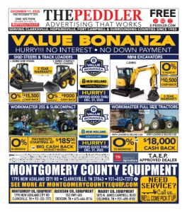 SERVING CLARKSVILLE, HOPKINSVILLE, FORT CAMPBELL & SURROUNDING COUNTIES SINCE 1983 E-PEDDLER.COM FREE BUYSELLTRADE THEPEDDLER ADVERTISING THAT WORKS DECEMBER 11, 2025 THRU DECEMBER 17, 2025 ONE SECTION VOLUME 43 • NO. 19
